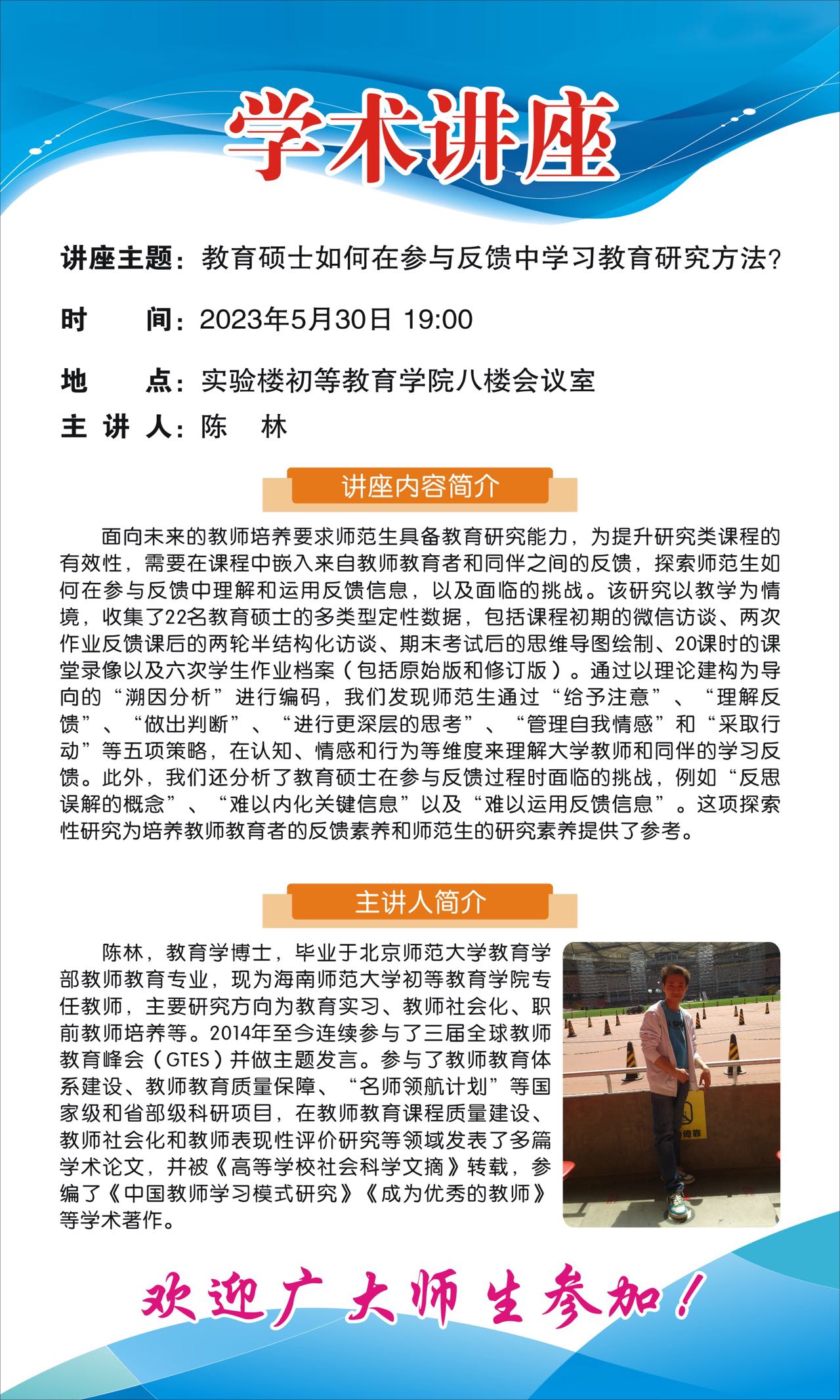 初等教育学院关于“教育硕士如何在参与反馈中学习教育研究方法”学术讲座的通知