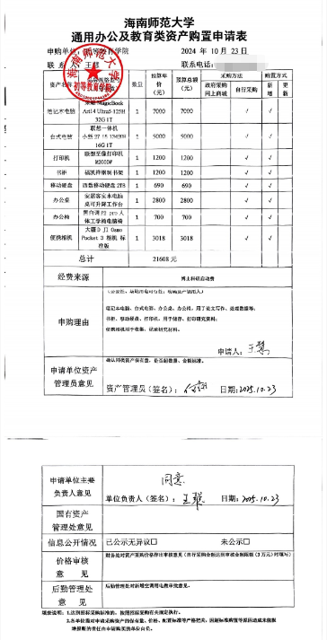 初等教育学院王慧老师购置电脑打印机办公桌椅相机等资产的公示